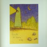 This is one of the 77 drawings officially published in the book “Yoshitomo Nara Drawing File”, which are exactly the 77 works of Japanese artist Yoshitomo Nara displayed at International Triennale of Contemporary Art in 2005, Yokohama, Japan. You would find the 77 drawings are on an old envelope with post mark, on the paper of a notebook, on a sheet of hotel’s memo, on a card of the restaurant, on a leaflet or on a map. It is true. This set of 77 drawings has perfectly reproduced the original size and color of Yoshitomo Nara’s works. Remaining of a cutting/perforated line is on the left edge. Please note. It would be a great collection to own these works.